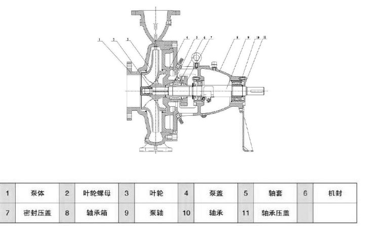 3、維修時(shí)不需將與泵體相連的管路打開,只要打開托架與泵體的螺栓, 將兩者分開就可維修葉輪和機(jī)械密封,簡(jiǎn)易方便。